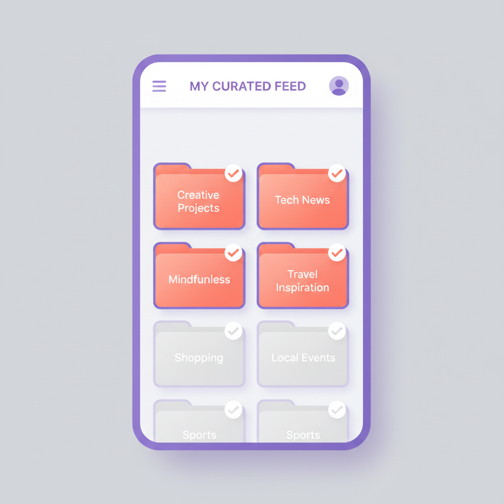 Choose exactly which folders you want to see from the people you follow. Customize each folder's cover with any image you want. No unwanted content, no algorithm surprises — just the topics you actually care about.